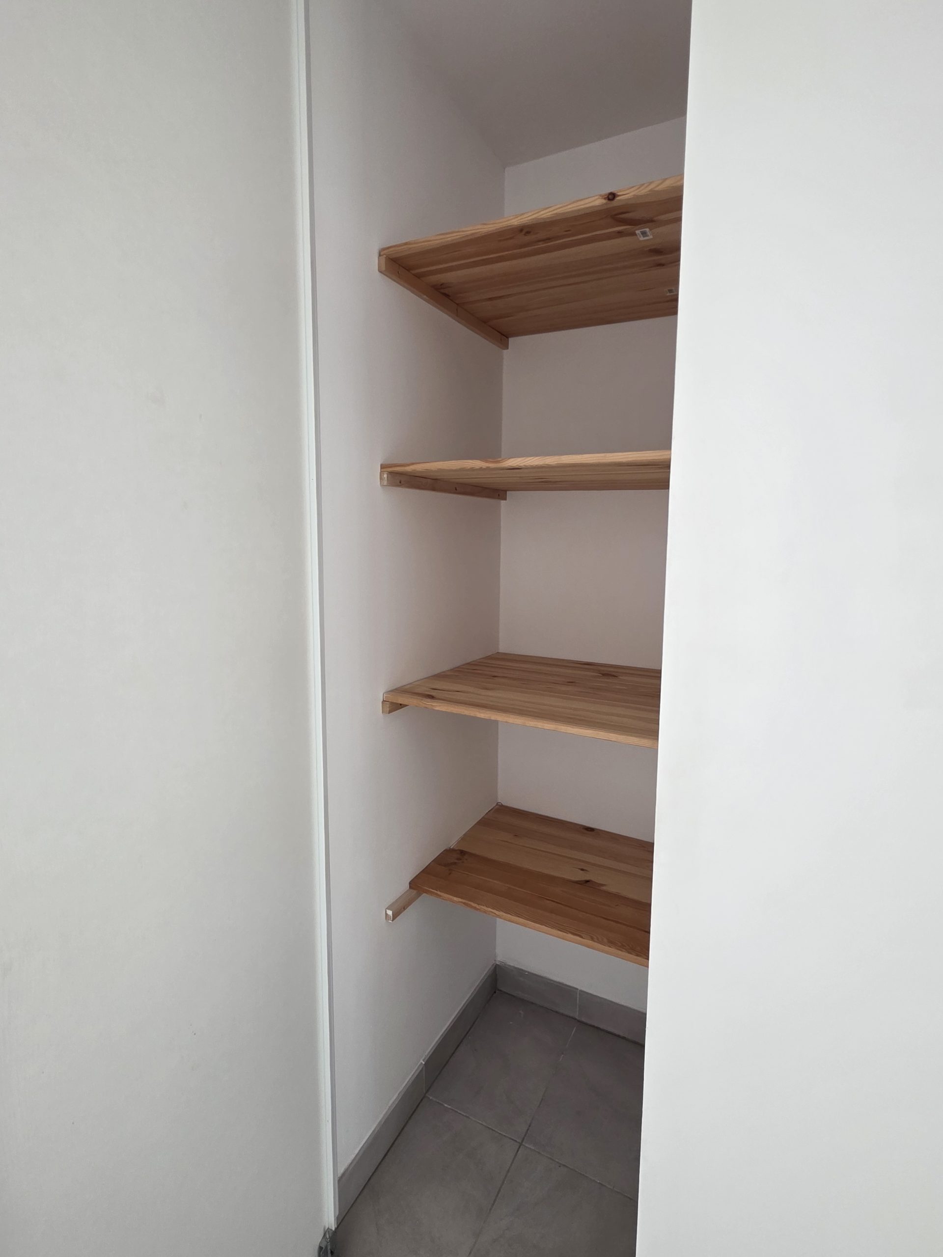 Chambre de 12 m² avec grand placard aménagé et accès direct terrasse