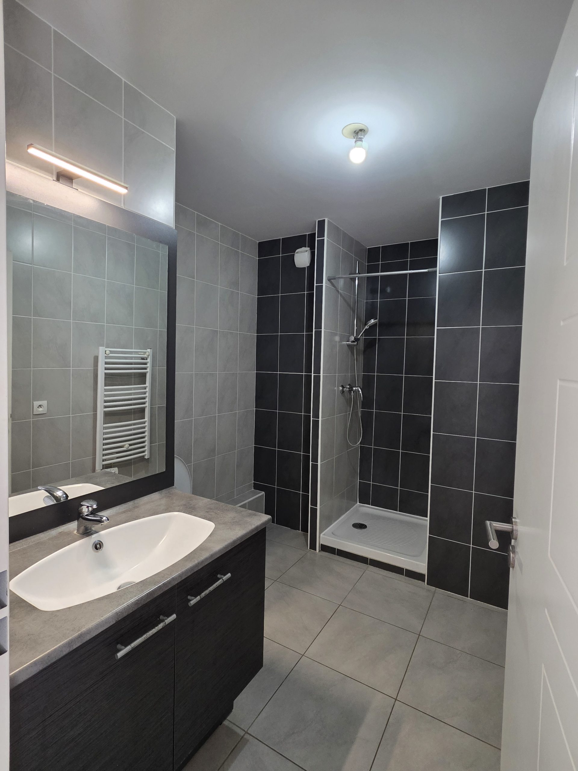Salle d’eau moderne avec meuble vasque et sèche-serviettes
